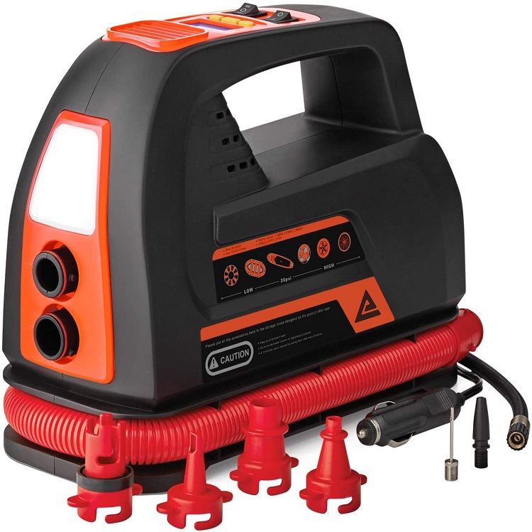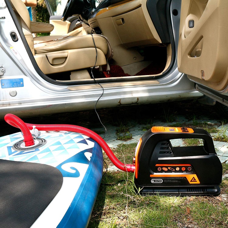 SUP Electric Pump is a type of special pump used to fill inflatable paddle board with air in 8-10 minutes quickly and automatically in the hot outdoor. This pump can significantly save our physical strength and time.